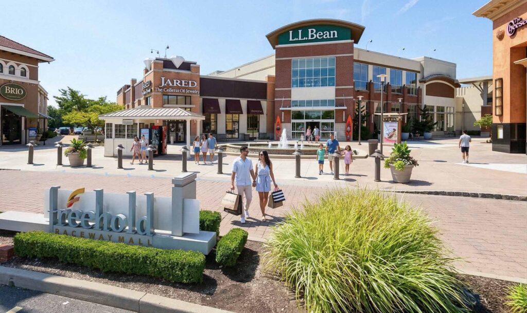 Freehold Raceway Mall is one of New Jersey’s largest shopping destinations — 200+ stores spread across two indoor levels in Freehold, Monmouth County. Anchored by JCPenney, Macy’s, and Nordstrom, the mall continues to be a Central NJ retail landmark. Situated at the intersection of U.S. Route 9, Business Route 33, and County Route 537, it’s easy to reach from across Monmouth, Middlesex, and Ocean counties. You’ll find a large food court on the 2nd level, sit-down dining at P.F. Chang’s and The Cheesecake Factory, six outdoor parking lots, plus the adjacent AMC Loews Freehold Metroplex 14 theater.
